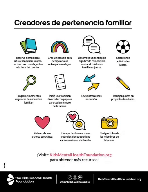Como seres sociales, el sentido de pertenencia es una necesidad humana fundamental. Los niños que se sienten conectados con su familia, su escuela, su vecindario u otros grupos significativos experimentan beneficios para su salud mental y física. ¡Hay cosas que podemos hacer para fortalecer ese sentido de pertenencia!