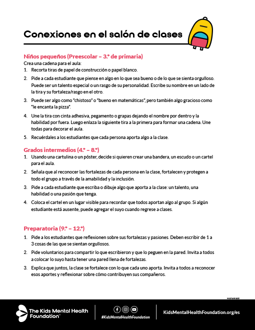 - Sentirse conectado con la escuela aporta muchos beneficios para la salud mental de los niños.